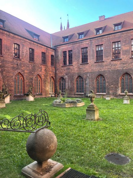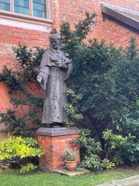 Fotonachweis: Kulturreferat für Westpreußen, Posener Land und Mittelpolen – Statue des Heiligen Franziskus im Franziskanerkloster in Danzig, Garten im Kreuzgang des Franziskanerklosters in Danzig