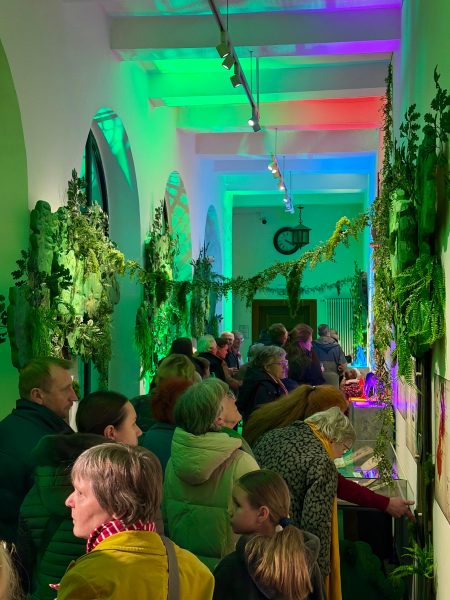 Rund 250 Besucherinnen und Besucher nahmen am 31. Januar an der Eröffnung der Sonderausstellung „Vom grundlosen Kolk bis zum Revekohl – Sagenhaftes aus Warendorf und der Kaschubei“ teil, die aufgrund des großen Andrangs in der Klosterkirche stattfand. Nach der Begrüßung durch Museumsleiter Martin Koschny und einem Grußwort von Bürgermeister Peter Horstmann sorgte die Musikgruppe Velvet Moon für die musikalische Begleitung. Bevor es dann in die Ausstellung ging, wurde in einer „Behind the scenes“-Gesprächsrunde mit den beteiligten Kooperationspartnern ein Blick hinter die Kulissen geworfen. Im Anschluss öffnete die Ausstellung ihre Türen und lud zu anregenden Gesprächen und ersten Einblicken in die Sagenwelten aus Warendorf und der Kaschubei ein.