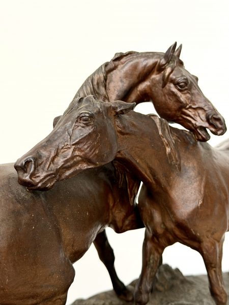 Pferdeskulptur „L’Accolade/Die Umarmung“ (bronzierter Eisenguss)
